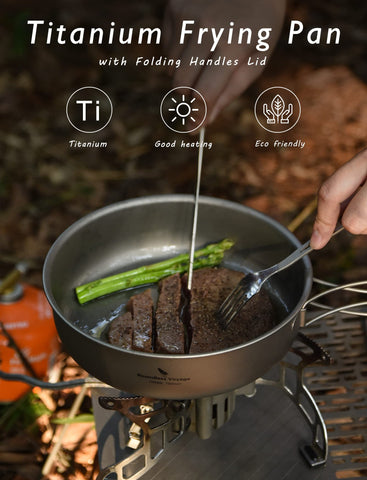 - Material: Titanium. Size: Φ190*(H)52 mm. Total weight: 233g. Titanium frying pan is much lighter and stronger than stainless steel and aluminum alloy. Never rust and Long service life and can be used repeatedly for a long time.