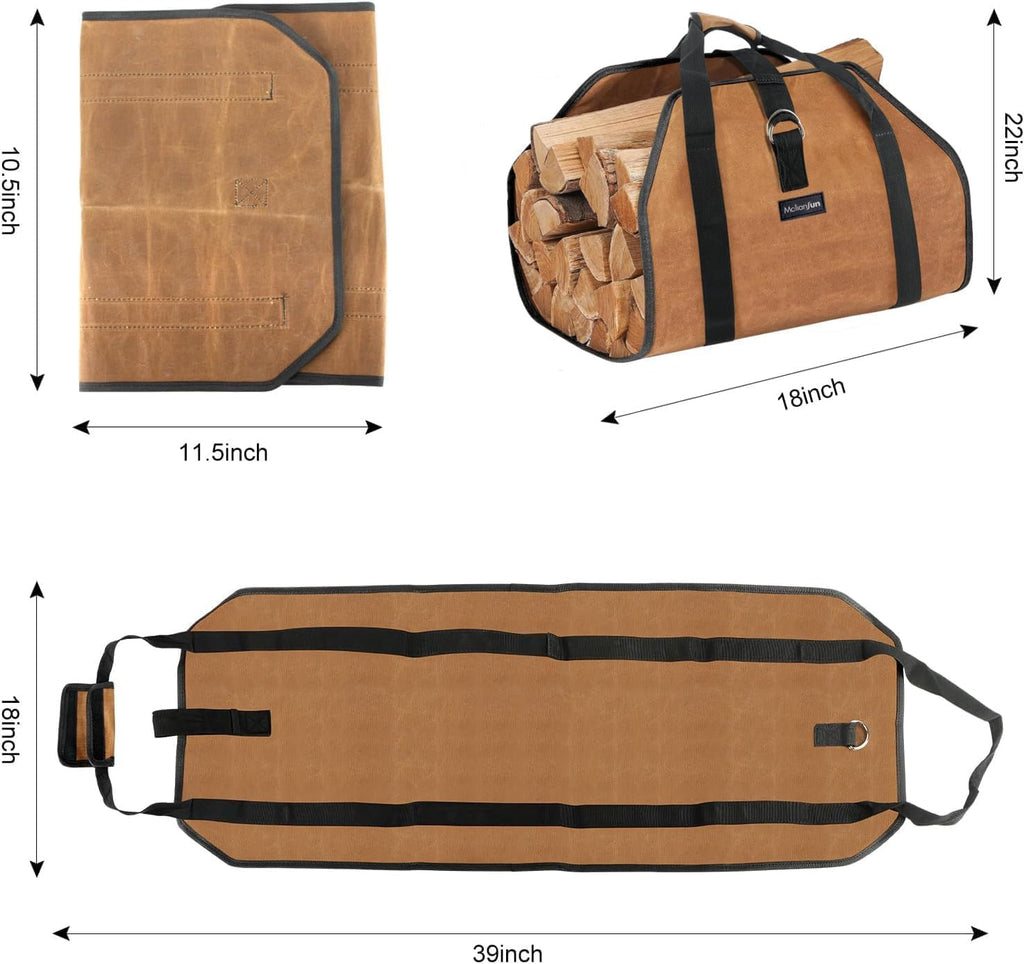 - Durable and Stylish: Crafted from sturdy waxed cotton canvas and featuring heavy-duty cotton/poly straps, this firewood log carrier is built to last and adds rustic charm to any home or cabin decor.