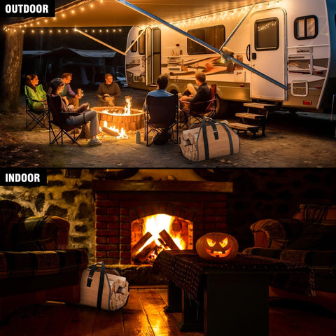 - Convenient and Neat: Equipped with padded handles and an adjustable central strap, this firewood carrier bag is easy to carry and transport. It provides a cleaner and more organized process for bringing firewood into your house or for camping trips.